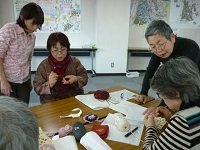 今回は、マンツーマンに近い形で丁寧に教えていただきました。家で仕上げられるように、最後の縁(ふち)編みをしっかり教えていただいたので、この冬は参加者の方たちを暖かく包む花柄マフラーの花が咲くことでしょう。