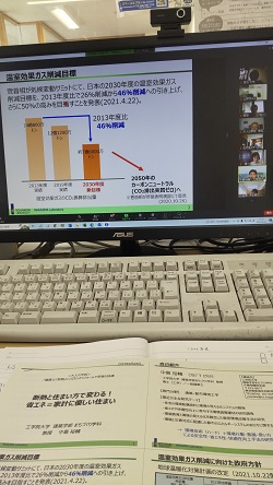 地球温暖化対策の話から、家庭内の用途別エネルギー消費割合のトップ3が「照明・家電」「給湯」「暖房」で、「冷房」の消費割合が全体の3.2%でしかないことは大きな驚きでした。